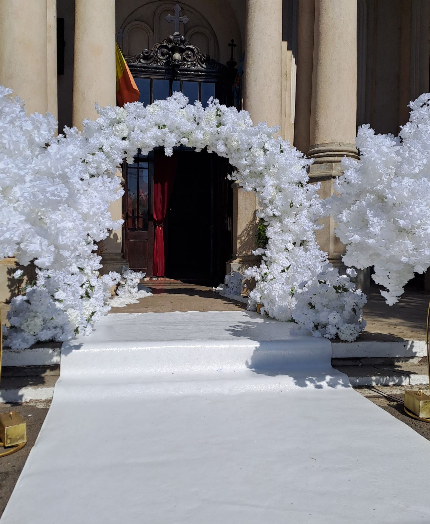 Transformă biserica într-un decor deosebit, potrivit pentru un moment plin de emoție. Poți opta pentru aranjamente florale albe, simbol al purității, sau combinații de alb și verde, care adaugă un aer natural și echilibrat. Decorurile pot include flori pe bănci, arcade elegante la intrare sau lumânări care creează o atmosferă caldă și intimă.