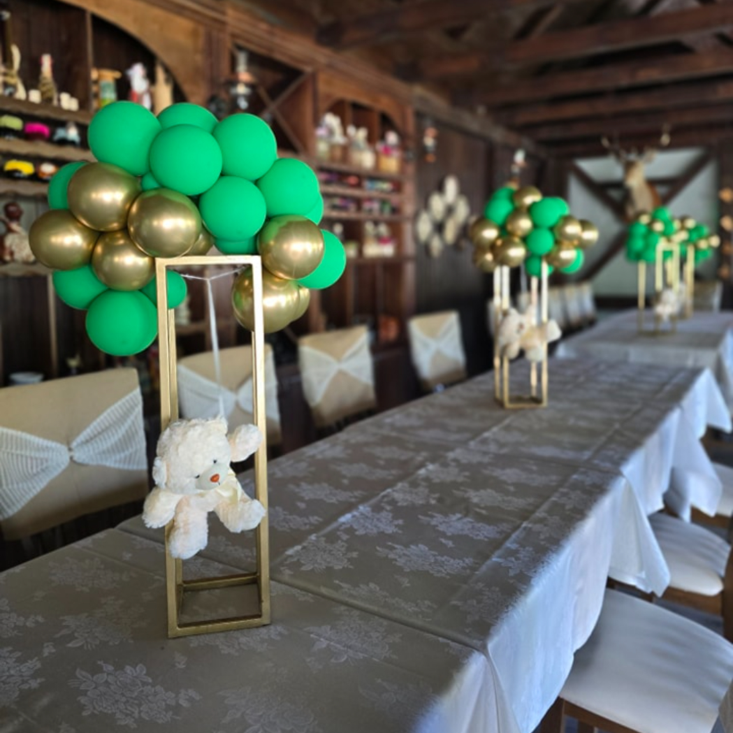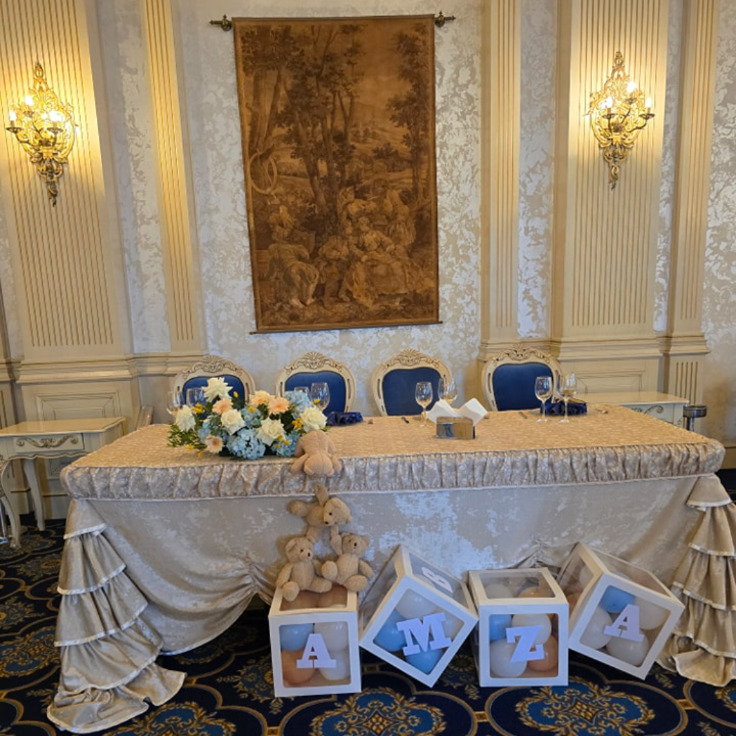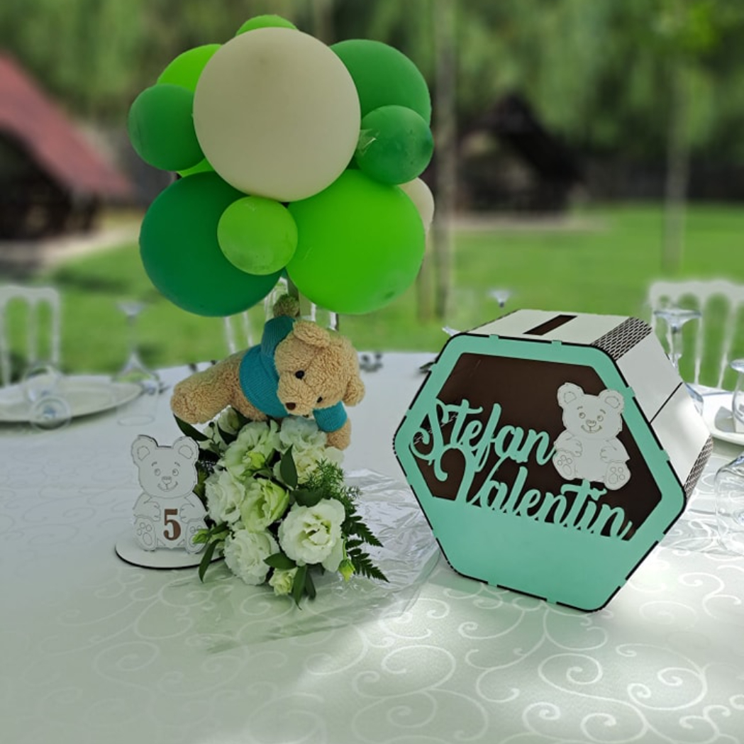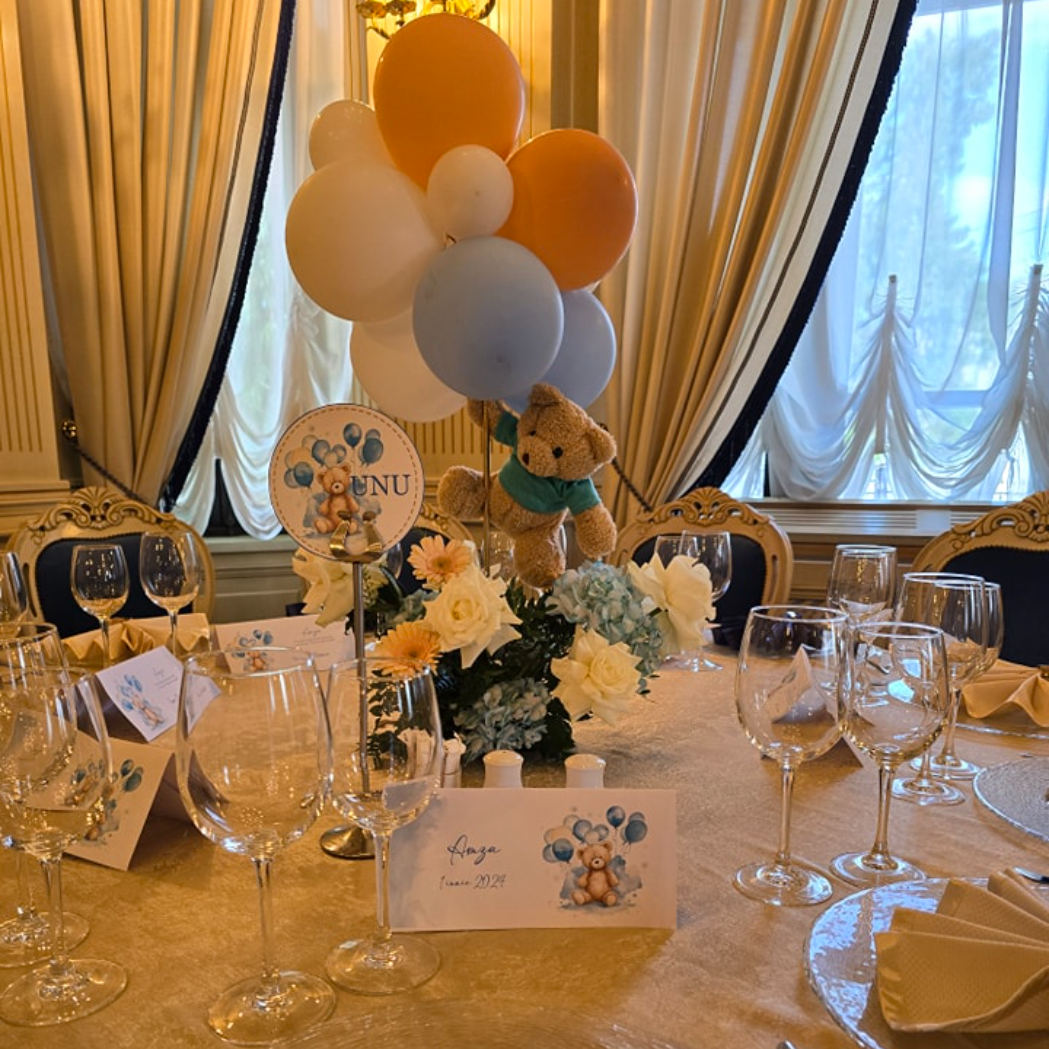 Aranjamentele de masă pentru botez adaugă un plus de eleganță și rafinament evenimentului, transformând fiecare colț al sălii într-un decor de poveste. Fie că alegi flori delicate, lumânări parfumate sau accesorii tematice, fiecare detaliu este gândit pentru a crea o atmosferă armonioasă și caldă. Combinațiile de culori și elementele decorative sunt atent selectate pentru a reflecta stilul și tematica botezului, oferind invitaților o experiență vizuală deosebită. Cu un design personalizat și o atenție deosebită la detalii, aranjamentele de masă vor completa perfect această zi specială.