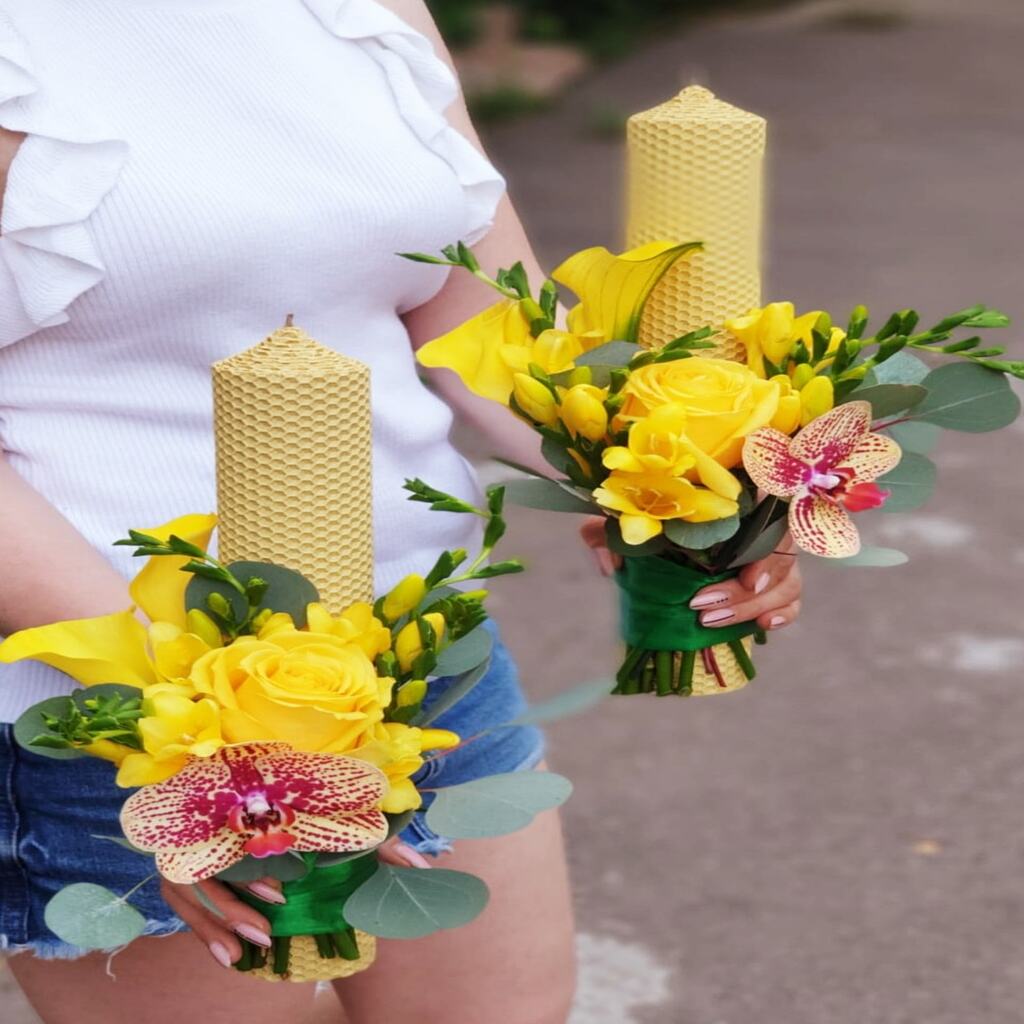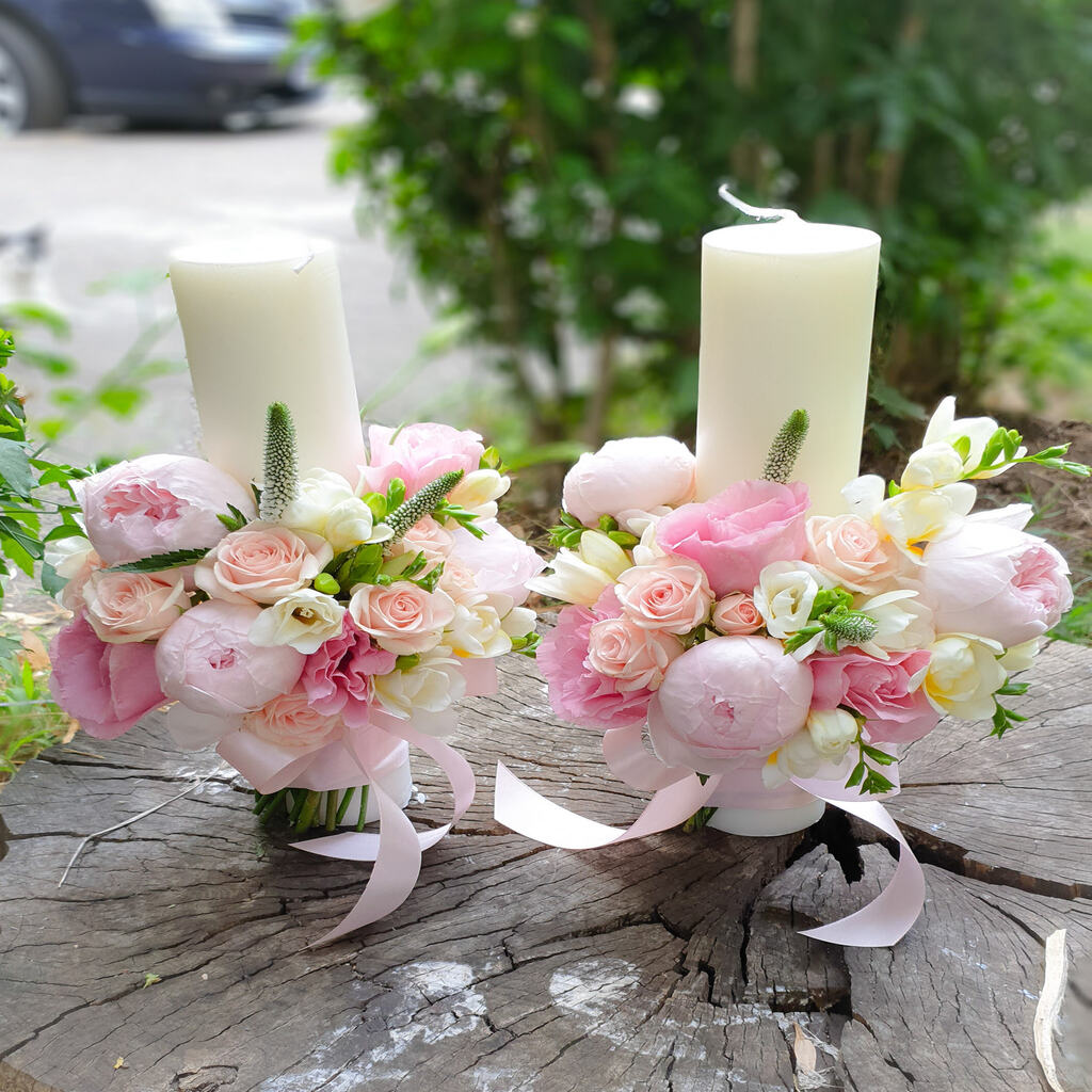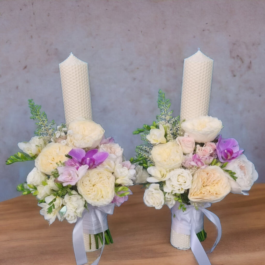 Lumânările de nuntă aduc un strop de magie și romantism în ziua cea mare, creând o atmosferă caldă și intimă. Fiecare lumânare este decorată cu flori naturale, panglici delicate sau detalii personalizate, pentru a se potrivi perfect cu tematica evenimentului și cu stilul mirilor.