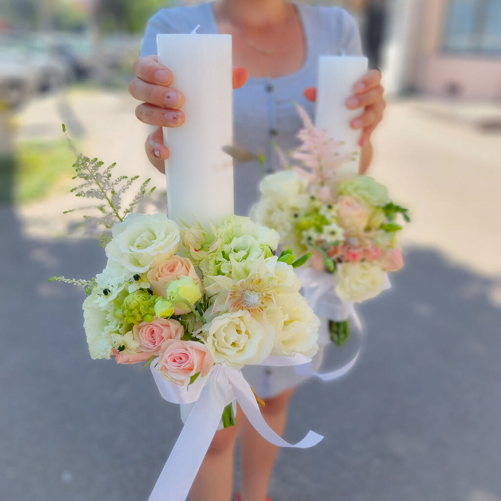 Poți alege lumânări elegante, în nuanțe de alb, crem sau pasteluri fine, sau variante mai îndrăznețe, cu accente de culoare care reflectă personalitatea ta. Indiferent de opțiune, lumânările vor adăuga un farmec aparte ceremoniei, simbolizând lumina, dragostea și începutul unui nou capitol în viața ta.