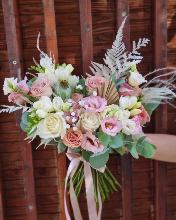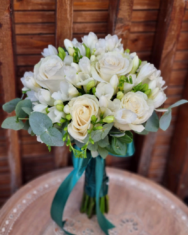 toate realizate din flori de sezon, în nuanțele stabilite. Un plus de stil pentru ziua ta specială!